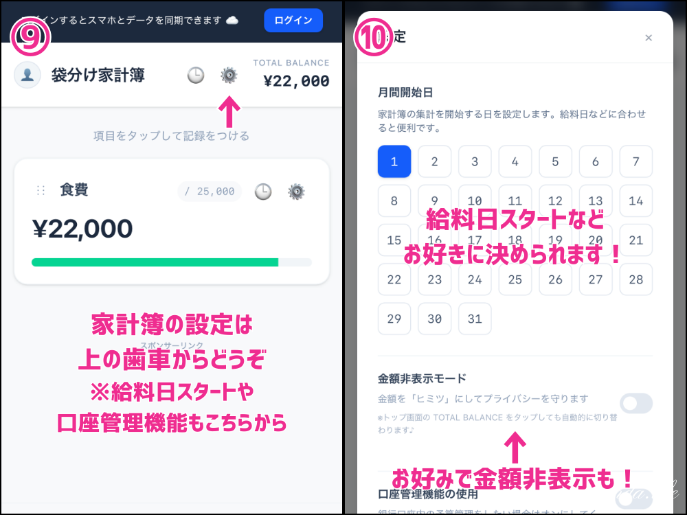 「給料日スタートにしたい!」などのちょっと便利なオプション設定(家計簿の設定)