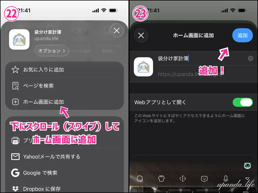 この画面をスマホのホーム画面に登録することで、アプリのようにも使えます。