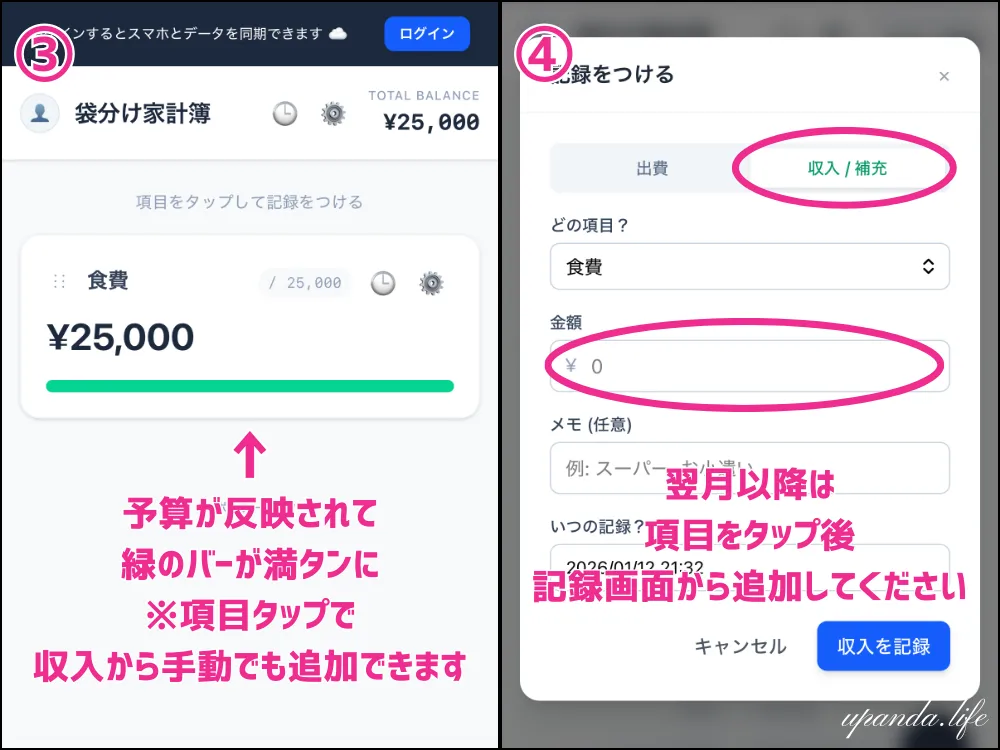 こちらは「ゆぱんだらいふ」で提供している家計簿WEBアプリ「袋分け家計簿」の紹介ページです。